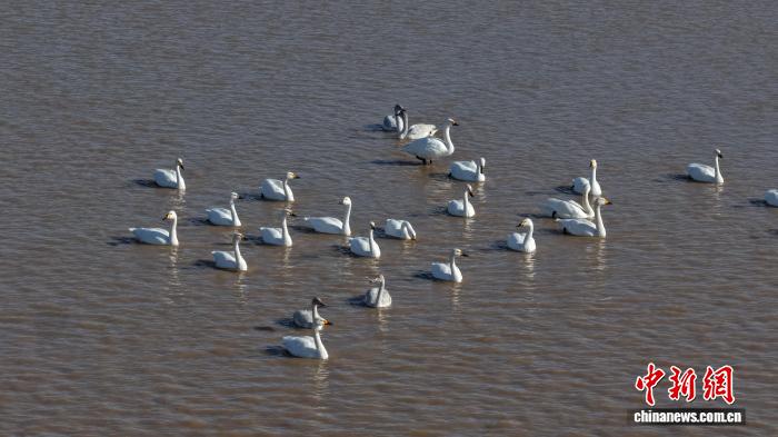 11月18日,黄河河北启启段迎去越冬季鹅,为始冬的启启黄河添加了无穷的生气取乖巧。图为天鹅正在火中游弋。袁洋 摄