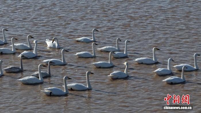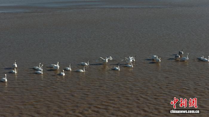 11月18日,黄河河北启启段迎去越冬季鹅,为始冬的启启黄河添加了无穷的生气取乖巧。图为天鹅正在火中游弋。袁洋 摄