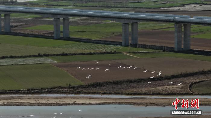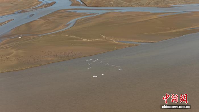 今日黄河河北启启段迎去越冬季鹅,为始冬的启启黄河添加了无穷的生气取敏捷。图为天鹅正在空中飞翔。(无人机相片) 袁洋 摄